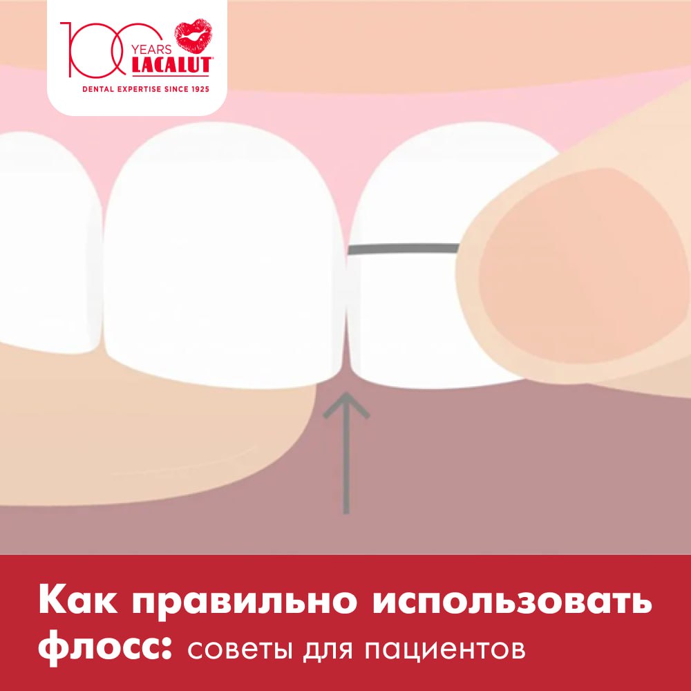 Зубная нить/флосс — это незаменимый инструмент в ежедневной гигиене полости рта. Она позволяет удалить остатки пищи и зубной налёт в тех местах, куда не достают щетинки зубной щётки. Несмотря на то, что флосс существует уже несколько десятков лет, многие пациенты не знают, как правильно им пользоваться и зачем он нужен. Пересылайте этот пост или ссылку на памятку (https://lacalut.ru/good-to-know/1828-zubnaya-nit-kak-kogda-i-pochemu-ey-nado-polzovatsya/) своим пациентам, экономьте время на приёме. Зачем использовать зубную нить? Используйте флосс хотя бы один раз в день, лучше всего перед сном – во время вечерней чистки зубов. А лучше всего после каждого приёма пищи. Техника использования зубной нити: Важно помнить! Если при использовании зубной нити появляется кровоточивость дёсен, не стоит волноваться. Это может быть естественной реакцией, и проблема должна исчезнуть через несколько дней регулярного применения. До и после чистки зубов флоссом необходимо мыть руки с мылом. Сделайте использование зубной нити (https://lacalut.ru/good-to-know/1828-zubnaya-nit-kak-kogda-i-pochemu-ey-nado-polzovatsya/) частью своей ежедневной гигиены, и ваши зубы и дёсны будут здоровыми на долгие годы! #памяткадляпациентов